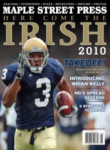 For those unfamiliar with the publication, Here Come the Irish is the brainchild of Notre Dame alumnus Jim Walsh over at the Maple Street Press, and is one of the best Irish football preview annuals you’ll find. The Maple Street Press takes pride in producing thorough, in-depth, and thoughtful analysis, and the 2010 version of Here Come The Irish is no exception. Written by ardent and informed Irish football followers, it comes packed with great information for both casual and hardcore fans.